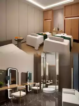 The designer has carefully considered the integration of the concept of "Hometown•Yubu" in the overseas Chinese sentiment of Wuyi into the hotel decoration. Many local cultural features are abstracted into design elements and integrated into the interior decoration. For example, the drop-off area is made into the style of a Lingnan courtyard, and the welcoming pine-shaped atrium garden landscape is quite "Guangdong".