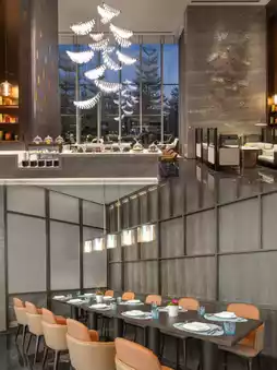 The Yuyuan Chinese Restaurant takes the prosperous old times as the main line of space, integrates the elements of arcade streets, flower bricks, and glazed windows into the design, and outlines the unique style of Jiangmen. Yuyuan is mainly traditional Cantonese cuisine, blending the unique flavors of authentic Wupin cuisine and Chaoshan cuisine.