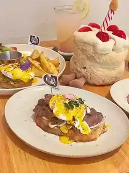 🥪 Beef and runny egg on European bread: The beef is tender and juicy, with a rich texture.