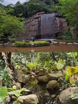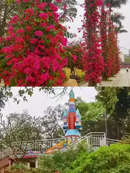 The park is themed around green ecology and features the southern "hometown of palm trees." The bridges connect the mountain paths, and the pavilions are surrounded by green water. The scenery varies with the weather and the seasons.