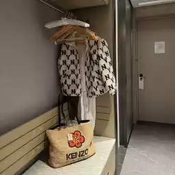 The room has a great sense of space, an open wardrobe, and thick, comfortable slippers