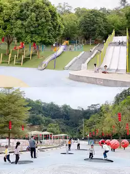 👉 All the rides are non-powered: 🈶️ big slides, all kinds of swings, bouncy clouds, climbing nets of all sizes, and interactive water play facilities. This is a great place for kids of all ages!
