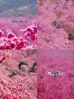 This sea of flowers is located in Jiangmen, Guangdong, and is one of the famous local tourist attractions. There are rich natural and cultural landscapes here that make people linger. Especially in the spring when flowers are blooming, the pink flowers are flying in the sky like colorful clouds, forming a beautiful landscape.