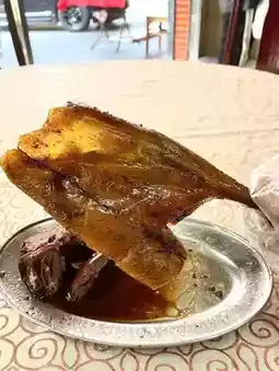 There is a roast goose street in Gujing Town. It is not called Sham Jing but Gujing. There are many shops here. We randomly found a Jinpingxiang roast goose shop. Since there are two of us, we ordered a set of roast goose + goose liver and goose intestines. Remember to ask the shop for sour plum sauce and white rice. It is a perfect match! The hot roast goose has a glassy and crispy skin, with almost no fat under the skin, and it is greasy and satisfying in every bite. The goose intestines are also very crispy, and the skin of the goose liver is a little burnt and hard, which is not very accustomed to ~
