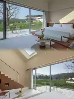 The homestay has 14 rooms, covering 8 different room types to meet various accommodation needs. Whether it's a courtyard twin room or a field view king room, the rooms are decorated in a simple and elegant wood tone, creating a warm and comfortable environment. The rooms are equipped with modern facilities such as central air conditioning, floor heating, a mini bar, an air purifier, and Marshall speakers, allowing guests to enjoy the convenience and comfort of home while enjoying the natural beauty. The panoramic floor-to-ceiling windows offer a view of the distant mountains and clouds. At night, you can lie in bed and listen to the chirping of insects, as if you were back in a childhood summer night.