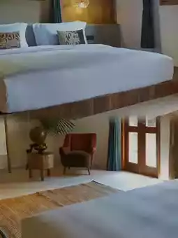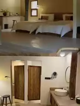 🏠 The rooms are uniquely designed, with a perfect blend of natural wood tones and modern minimalist style. Each room has large windows, allowing the gentle morning sun to shine on your face, and offering a stunning view of nature. 🛏️ The beds are soft and comfortable, with high-quality bedding for a good night's sleep.