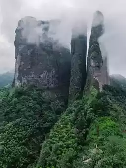 Praised by the traveler Xu Xiake in his records, Jianglang Mountain gathers the essence of nature and is famous for its three towering rock pillars, known as the Three Stone Slabs.
