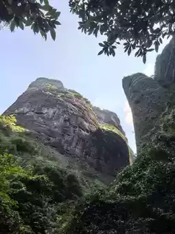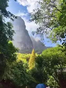 Standing at the foot of the mountain looking up at the three giant stones, I truly understood what "spectacular" means! Lang Peak, Ya Peak, and Ling Peak are three massive rocks split by the heavenly axe, standing majestically. When taking photos at the viewing platform, no matter the angle, you cannot avoid their magnificent presence. This sense of awe can only be felt in person.