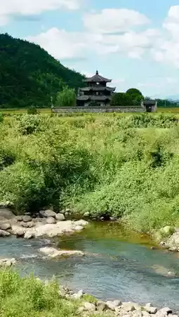 Overlook the rolling rice fields from here; in autumn, the golden fields frame the ancient building like a painting