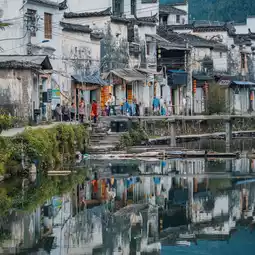 The village's reflection on the tranquil pond and the distinctive silhouette of the horse-head walls of Whipai architecture create a scene reminiscent of a traditional ink painting, offering a quiet beauty that makes you pause and admire.