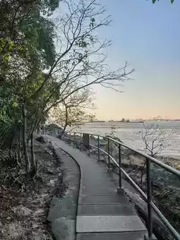 There is a great hiking route along the Yangtze River in Jiangyin. Start from Huangtiangang Park and follow the trail without a map. The vast sky, wide river, and rich colors will refresh you. You will pass one park after another, with no clear boundaries between them: Huangtiangang Park, Jiucaigang Park, Shipyard Park, and E'biwei Park. E'biwei Park is the largest, and in season, the ginkgo and red maple trees at the entrance are bright and vibrant. There are small hills in the park, and the trails are great for light exercise. The riverside boardwalk is refreshing, and you can rest at the "Jiangwei Haitou" and watch the waves crash against the shore and the sunset.