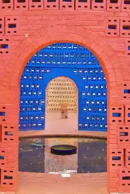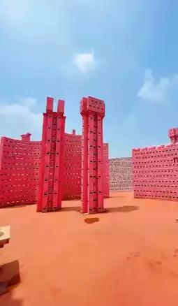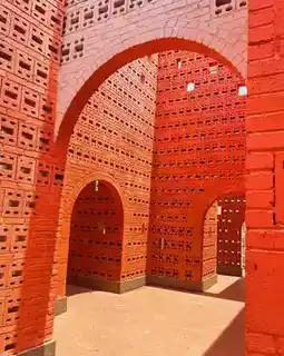 The Ant Workshop was designed by Luo Xu, an artist known as the "Gaudi of Yunnan". It was built on an abandoned brick factory using hollow bricks in strong contrasting colors, like an ant fortress.