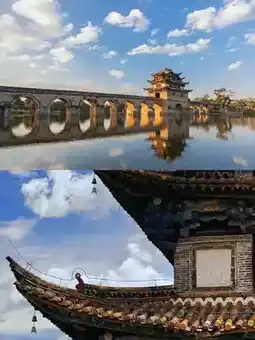 Located outside the west gate of Jianshui Ancient City, spanning the Lujiang River and Tachong River, there are two stone-carved dragon heads and dragon tails on both sides of the bridge deck. The sunset reflection of the bridge hole makes the entire bridge look more exquisite and spectacular.