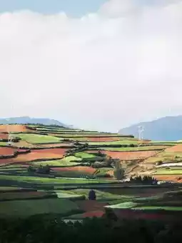 Day 2: Explore the vibrant colors of the Dongchuan Red Lands -> Immerse yourself in the natural symphony of the Le Pu Ao (Music Score Valley) -> Witness the breathtaking sunset at Luoxia Valley (Sunset Valley) -> Feel the vitality of the thousand-year-old dragon tree -> Stroll through the colorful slopes of Jinxiu Garden (Embroidered Garden) for a visual feast.
