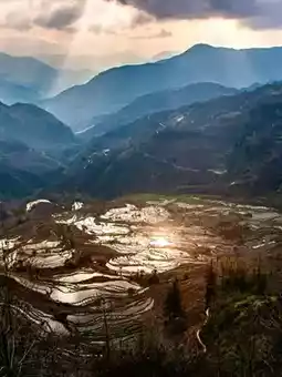 🌾 Yuanyang Hani Terraced Fields: Magnificent sunrises and sunsets, against a backdrop of golden clouds, the terraced fields during the irrigation season are like a dream. The water surface reflects the sky, and the light and shadow change. Don't miss this charming scenery! Suggested visiting time: November 2024–March 2025.