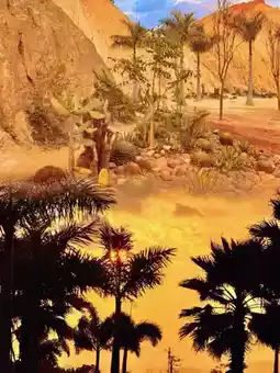 1️⃣ Desert Palm Area🌵🌴: Feels like stepping into the California desert, perfect for stunning photos against the blue sky!