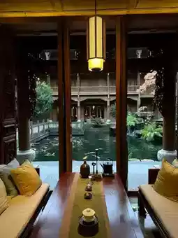 Heyuan is located by Guangci Lake, built along the water. This hotel, constructed in 2010, took seven years to complete and is currently the largest Jianchuan wood carving complex in China. Every corner, door, window, and eave showcases the exquisite, lively, and ingenious expression of Jianchuan wood carving~