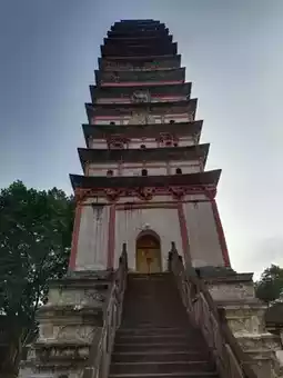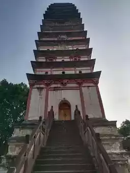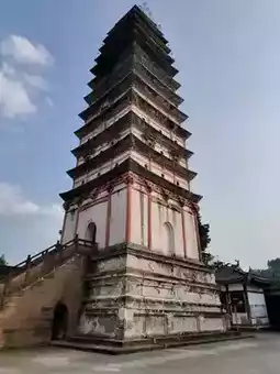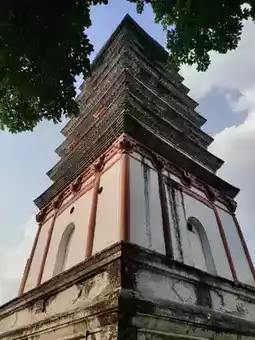 The White Pagoda in Jianyang City is located in the southern suburbs of the Jianyang urban area, originally built in the summer of the third year of Qingyuan during the reign of Emperor Ningzong of the Song Dynasty, and completed in the autumn of the second year of Jiatai (1202). The pagoda is a brick and stone structure imitating a wooden framework, with thirteen levels in a pavilion style. The spire is a round pointed tip, and the body of the pagoda is quadrilateral, tapering upwards layer by layer, with windows on each level. Inside the pagoda, there are 96 stone steps leading up to the ninth floor, and on the inner walls, there are still over a hundred Song Dynasty Buddhist frescoes. The base of the pagoda is a square Sumeru pedestal, with each side measuring 11.2 meters, and the total height of the pagoda is 37.9 meters. It is a precious historical relic for the study of Song Dynasty architecture and painting art.