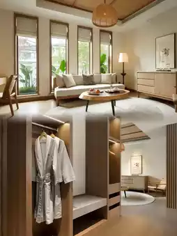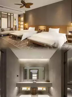 The moment you step into the hotel, you feel like you've traveled to another world. Natural elements such as wood, rattan, and green plants are everywhere, perfectly blending with the simple and modern design style to create a warm and comfortable resort atmosphere. The hotel lobby has a high ceiling design, and the sunlight shines through the huge floor-to-ceiling windows, bright and warm. The artwork and ornaments that can be seen everywhere demonstrate the hotel's taste and style.