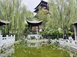 Every city has its own park. The Chengdu Garden is based on Du Fu's "Flowers weigh down the Jin Guan City," with red walls, bamboo shadows, and hibiscus blooming, recreating the beauty of western Sichuan gardens.