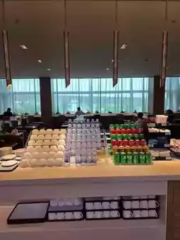 The choice of food is modest, but quite decent for a transit lounge. The main feature is the noodles that are cooked right in front of you. The cook works quickly, the noodles are hot and tasty. Plus rice, eggs cooked in different ways, several types of salads and traditional Chinese snacks.