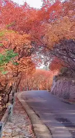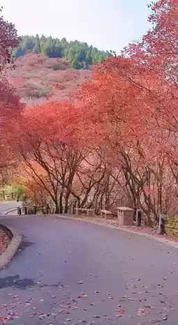 Following the winding path, sunlight filters through the gaps in the maple leaves, creating patches of dappled light✨. The babbling brook by the roadside, reflecting the red leaves, forms a stunning landscape painting.
