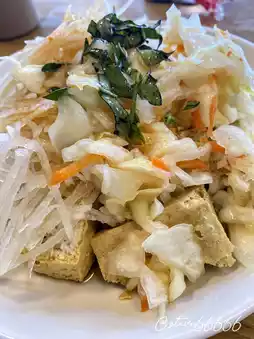 The stinky tofu is made of non-GMO soybeans, and fermented with natural yeast, so that the tofu itself has a strong fermented aroma and elasticity, which is the basis of the soul of stinky tofu. After the "three-pot oil temperature crispy method", that is, three oil pans with different oil temperatures are fried in sequence, to ensure that the skin is crispy and the inside retains a moist taste. In addition, it is fried on the spot, and the ingredients are refreshing and greasy, and the overall evaluation is excellent. The exclusive ingredients are the "three soul treasures" - Taiwanese kimchi, shredded radish, and basil, with a special garlic sauce, which can balance the fermented aroma of the stinky tofu and have rich flavors.