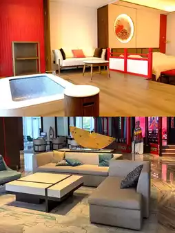 Jiashan Yunlan Bay Hongjing Four Seasons Hotel: an immersive drama-themed hotel, decorated with theatrical elements. There is a private hot spring bath in the room, so you can enjoy the hot spring without leaving home.