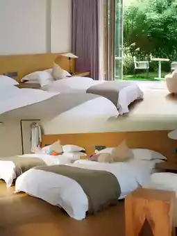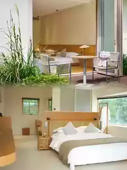 The first phase of the homestay has 1 reception lobby, 10 independent courtyards, and 3 lakeside boathouses. There are 50 rooms in the 10 courtyards, with various room types, including ginkgo courtyard king rooms, ginkgo bathtub king rooms, ginkgo deluxe king rooms, ginkgo family loft twin rooms, ginkgo family twin rooms, and lake view boathouses. Each room has a full panoramic floor-to-ceiling window, allowing you to enjoy different beautiful views such as garden scenery, starry sky, and lake view.