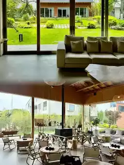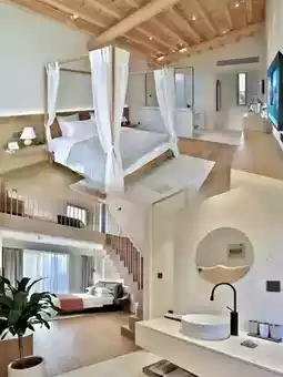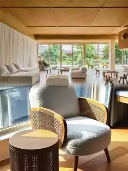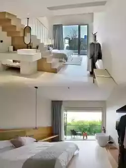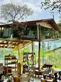 The exterior of the homestay is white and gray, with the charm of a Jiangnan water town and a three-dimensional geometric feel. The interior combines original wood, wabi-sabi, and modern styles, with soft furnishings made of century-old beech wood. The atmosphere is great, and the photos are very photogenic, instantly transforming you into a Japanese-style youth. It is located in the Ginkgo Swan Lake Scenic Area, surrounded by thousands of ginkgo trees and many black swans leisurely swimming on the lake, like a flowing painting.