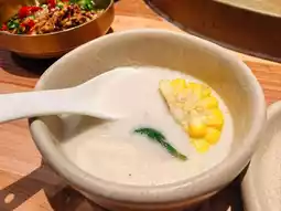 -- We chose the perilla soup base, which contained cucumber slices, tofu, ginger slices, radish slices, corn (which was crispy, tender, and sweet after cooking), etc.