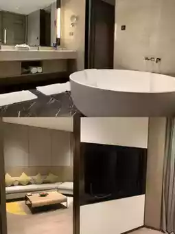 The suite I stayed in was really big, with a clear division between the living room, bedroom, and bathroom. The living room has a comfortable sofa and a large TV, perfect for chatting with friends or watching shows. The bed in the bedroom is soft and comfortable, with skin-friendly bedding, ensuring a good night's sleep. 💤 The bathroom is dry and wet separated, and there's a large bathtub, perfect for a relaxing soak after a tiring day.