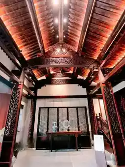 ✔️The building is a Qing Dynasty three-courtyard ancestral hall with a brick and wood structure, facing south with its back to the north, covering a total area of 1,384 square meters. The interior is exquisitely decorated with carvings of figures and floral patterns on the beams, square bricks paving the floor, featuring typical Jiangnan architectural style of the Qing Dynasty.