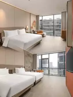 The hotel's design blends modern minimalism with the elegant charm of Jiangnan water towns. The lobby is spacious and bright, with exquisite decor that creates a warm and comfortable atmosphere. Adjacent to the South Lake Scenic Area, the hotel is just a short walk away, surrounded by lush greenery and a tranquil environment, offering a peaceful escape from the city's hustle and bustle.