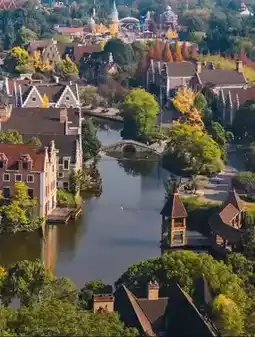 Upon entering the park, the first thing that catches your eye is the iconic European-style architecture. Red-roofed cottages, white colonnades, grand churches, and castles reflected in the blue lake water make you feel as if you've instantly traveled to a medieval European town.