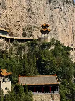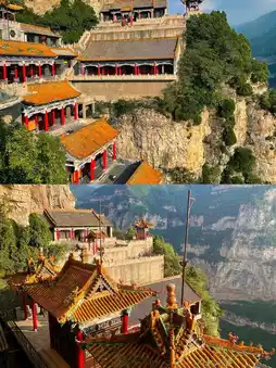 🌟Yunfeng Temple is the core attraction, with a zigzag Yunfeng plank road on the left.