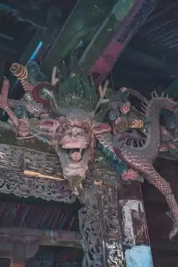 o The most eye-catching feature inside the main hall is the Ming Dynasty "Double Dragons Playing with a Pearl" colored sculpture, with two golden dragons coiling and leaping in vivid postures