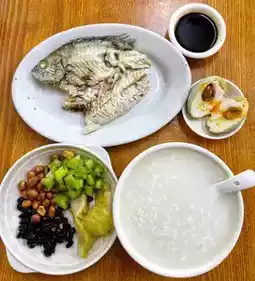 For dinner, eat at Jin'an Street Food Stall, a restaurant frequented by locals. A bowl of white porridge with a variety of side dishes to choose from, and the price is very reasonable. The dishes in the picture cost only 25 yuan.