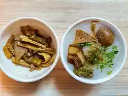 After visiting the temple, have breakfast at Feiyan Sanxiang Guozhi. This is an old and authentic Guozhi restaurant in the market, frequented by locals. For 10 yuan, you can add marinated eggs, bitter melon, pig skin, marinated meat, and yuba (all must-try).