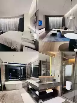 The rooms are exceptionally spacious, featuring a minimalist yet sophisticated design, incredibly soft bedding, and panoramic floor-to-ceiling windows that offer breathtaking views of Jieyang's nightscape – perfect for capturing stunning photos! The bathrooms are equipped with comfortable bathtubs and toiletries from the renowned British skincare brand, thisworks.