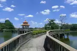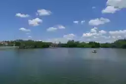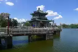 West Lake Park is not large, but it is small and exquisite. Entering the park from the north gate, you are greeted by the Nine-Bend Bridge and the Lake Heart Pavilion, both built in the lake. The Lake Heart Pavilion, with its green glazed tile roof, seems to float on the lake's surface, looking particularly beautiful against the blue sky and white clouds. Walking along the Nine-Bend Bridge into the Lake Heart Pavilion, you'll find that the two-story pavilion is actually a single story, with hollow carved windows on all sides. The breeze blows in from the lake, making the pavilion a cool retreat even at the height of summer.