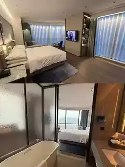 Step inside to discover 260 guest rooms and suites that blend modern design aesthetics with Chaoshan cultural elements, creating a visual and spiritual feast. Floor-to-ceiling windows bring the Rong River and cityscape indoors, syncing your stay with the city's pulse. Multifunctional alarm clocks feature 15W wireless fast charging, multi-mode music playback, and hands-free calling, adding convenience and joy to your travels. In the bathroom, a soothing tub paired with premium bath amenities from the renowned British skincare brand thisworks ensures ultimate relaxation.