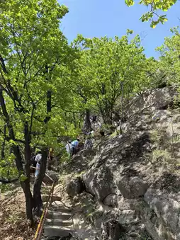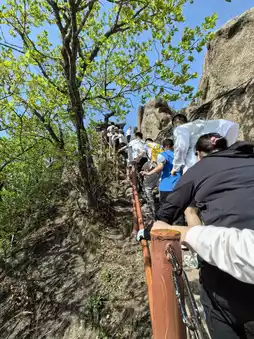 Jilin City's Zhuque Mountain is suitable for family trips. The weather is really great. Because of the May Day holiday, there are a lot of people. The higher you go, the steeper the mountain road becomes, so we had to stop and go. In many places, only one person can pass at a time, using both hands and feet. The view from the mountain top is beautiful and the trip is worthwhile. Descending the mountain is generally faster, but it's quite tiring on the legs; my legs were shaking so much that I couldn't focus my phone camera for photos. We chose to hike up the mountain, but there is also another route where you can take a sightseeing car up to Dongshan, which costs 50 yuan. The two routes are completely different. The 'Little Waist' at the top of Dongshan is a beautiful spot for photos, and I definitely want to try the sightseeing car route in the future. There are many facilities for children to play with at the foot of the mountain, and the night light show is also very good, especially suitable for family trips. We prepared food and drinks in advance, found a place in the scenic area to have a picnic, and left the unfinished food at a nearby water-selling cabin. The owner was very nice and allowed us to store our things for free, so we could go up the mountain with less to carry. It's hot weather, so bring plenty of water. There is only one place to buy water near the top of the mountain, at 6 yuan per bottle, which is okay. Overall, recommended!