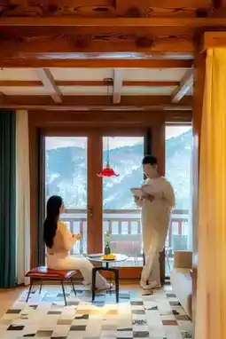 Wake up in the morning, through the large floor-to-ceiling windows are the morning light bamboo shadows, clouds rise and fog fall, as if sleeping in the mountains and wild.