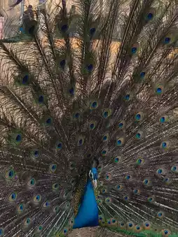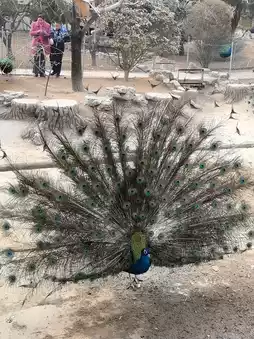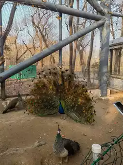 There are many peacocks in the zoo, and I especially love the blue ones.