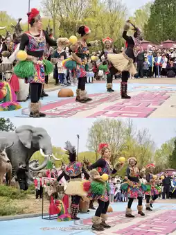 During the Qingming holiday, the fifth annual Circus Carnival at Jinan Wildlife World officially kicked off. I took Da You and Qi Yu's little sister to join the joyous gathering with over thirty performers from various countries. The comical Mr. Clown, the gracefully dancing Ukrainian girl, and the enthusiastic African 'chief' made the atmosphere incredibly joyful!