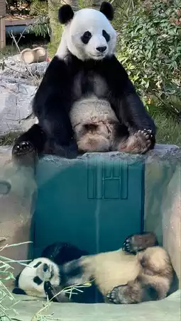 It's recommended to enter from the south gate, which is closer to the panda pavilion. Rush to the giant panda pavilion at 9:30! The indoor and outdoor spaces are much larger than before. Both are outside, Hua Ao and Ya Ji, one still and one active haha, Ya Ji is a bit bigger and more lively. Always on the move, running around. Hua Ao is a bit smaller, always sleeping, contributing a triangular rice ball silhouette, super cute.