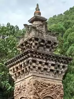 The Dragon and Tiger Pagoda is a stone pagoda with a square plan, standing at a total height of 10.8 meters. It is named after the dragon and tiger carvings on the body of the pagoda. It consists of a base, body, eaves, and finial. The architectural proportions of the Dragon and Tiger Pagoda are symmetrical and aesthetically pleasing, making it a fine example of the combination of stone carving art and architectural art. The beautiful shape of the Dragon and Tiger Pagoda complements the high relief carvings, showcasing the unique style of Tang Dynasty carving and modeling art, providing valuable research material for sculptors.