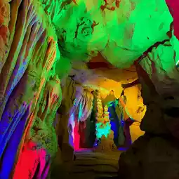 Karst cave: The colorful lights make the karst cave as dreamy as a fairyland.