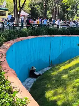 On the way back, we passed by the panda pavilion that my daughter has been looking forward to. We saw a cute giant panda sleeping soundly, hugging a large pillar. Its adorable, lazy, and silly look makes you want to hug it. The other giant panda is hiding quietly by the wall, as if playing hide-and-seek with us. Or maybe it's just trying to find some peace and quiet, as there are always so many people coming to see it. Even so, my daughter's sharp eyes spotted it. To avoid disturbing it, we took a quick photo and then left quietly.